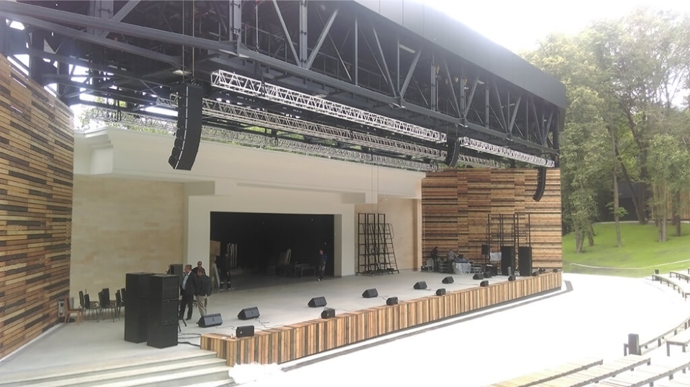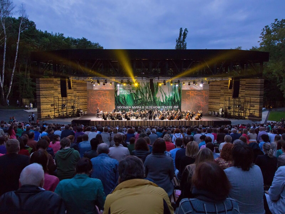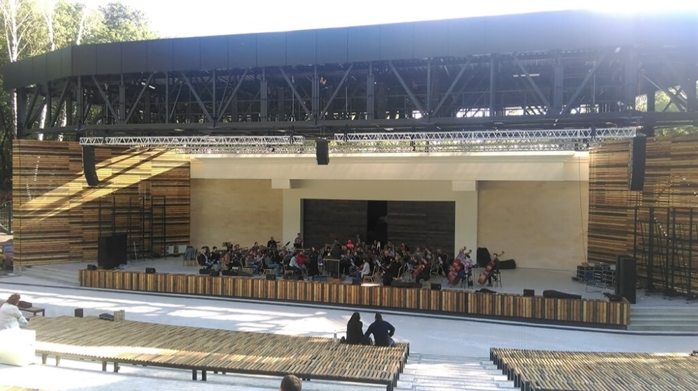 Зелёный театр — открытая площадка для проведения концертов. Зал-амфитеатр и сцена расположены в парке на открытом воздухе. У заказчика была задача — смонтировать так, чтобы потом на зиму было легко всё убрать. Для этого мы установили всё оборудование в специальные мобильные рэки, а кабельные трассы проложили с возможностью быстрого свертывания и переконфигурирования. Световыми приборами управляют беспроводные приемники-передатчики. Успели к проведению Платоновского фестиваля искусств — работу сделали за 28 дней: поставили, смонтировали, настроили и подготовили к использованию оборудование.