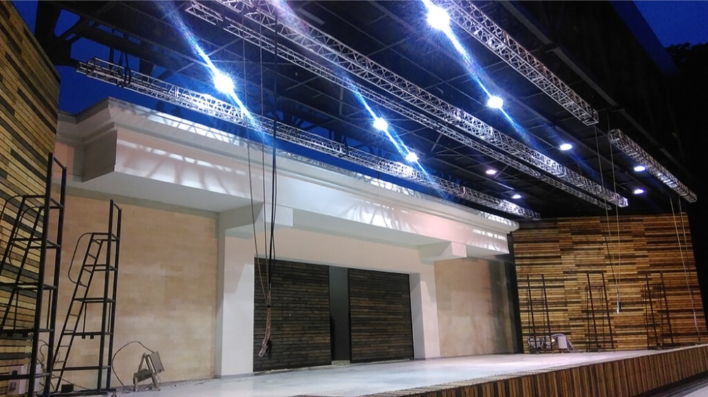 Быстро спроектировать и смонтировать по уже имеющимся металлоконструкциям систему подъема декораций и подвеса задников и акустики, а также сделать всю кабельную и компонентную систему мобильной, чтобы зимой хранить в подходящем по условиям помещении. Успеть к Платоновскому фестивалю.