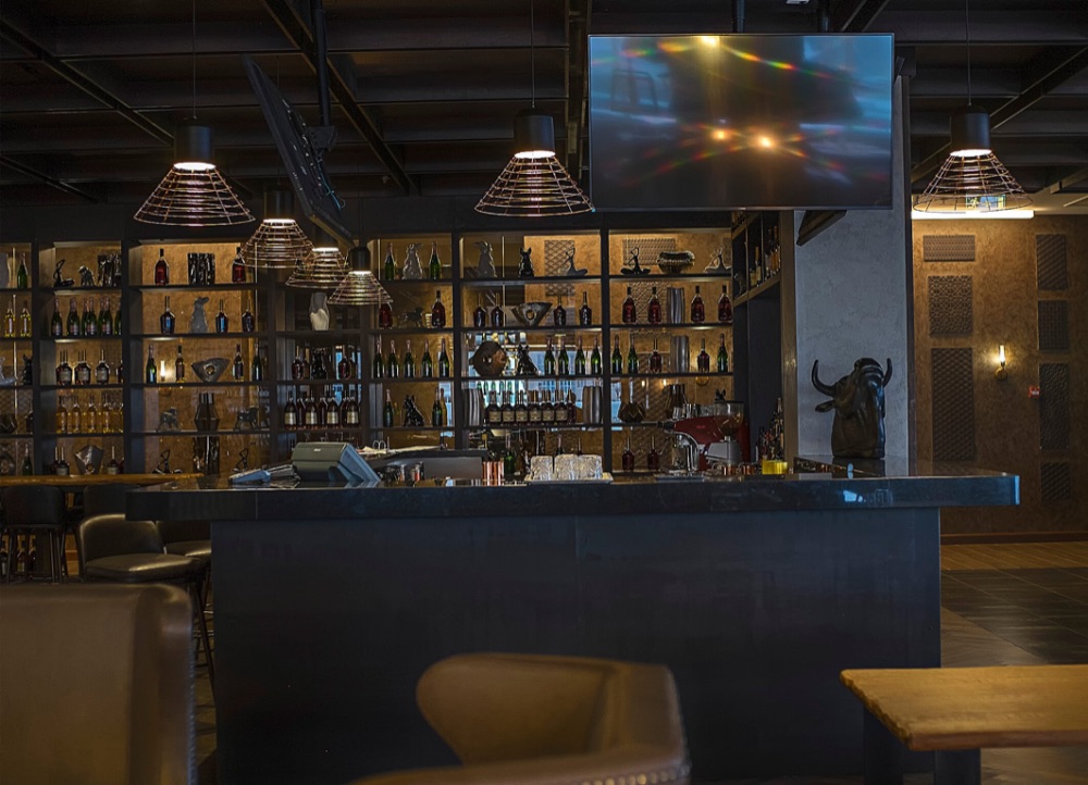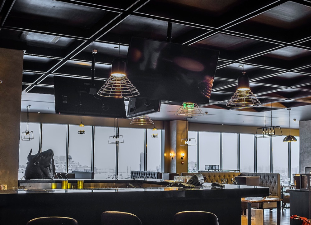 Подвесные видеопанели в баре отеля