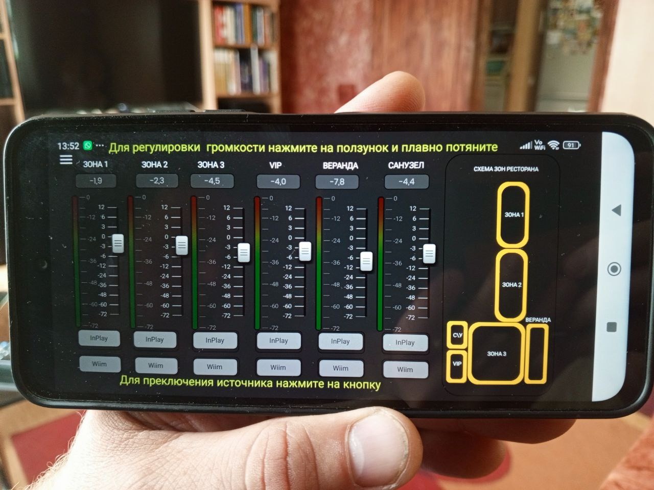 Многозональное озвучивание ресторана с беспроводной системой управления и работой по расписанию.